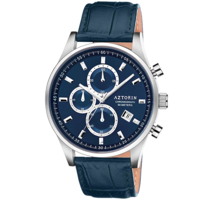 ΡΟΛΟΙ AZTORIN A060.G378 AZTORIN Casual Chronograph Blue Leather Strap
