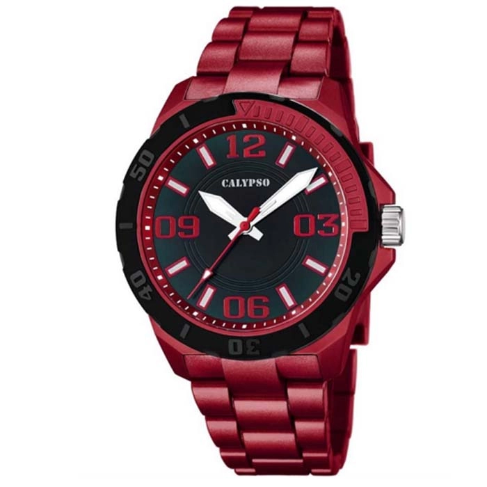 Ένα κομψό ρολόι της CALYPSO από κόκκινη ρητίνη με μαύρο καντράν