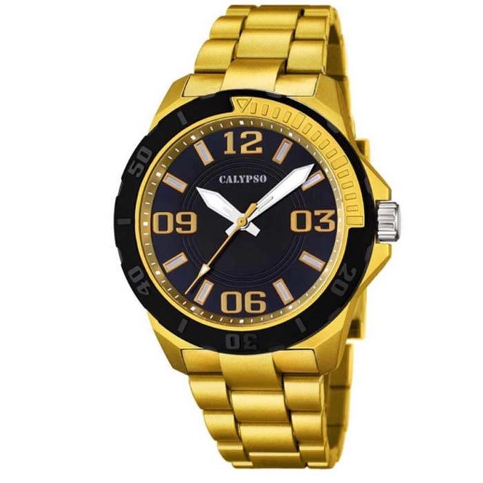 Ένα κομψό ρολόι της CALYPSO από επιχρυσωμένη ρητίνη με μαύρο καντράν