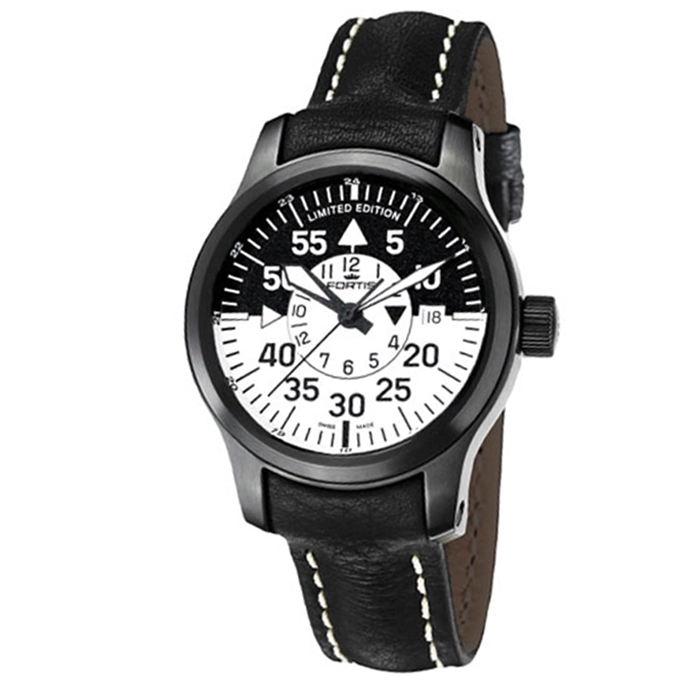 Το Flieger, του οίκου FORTIS είναι ένα συλλεκτικό ρολόι από ανοξείδωτο ατσάλι και μαύρο δέρμα με αυτόματο μηχανισμό.