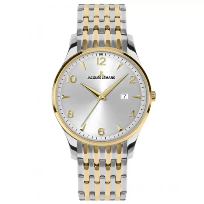 Ένα όμορφο ρολόι από ανοξείδωτο ατσάλι που ακολουθεί κλασική σχεδιαστική γραμμή με μοντέρνες πινελιές. Μία εξαιρετική πρόταση της JACQUES LEMANS.