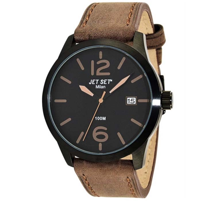 Aπό τον οίκο Jet Set της σειράς Milan ένα ρολόι από μαύρο ανοξείδωτο ατσάλι και καφέ δέρμα