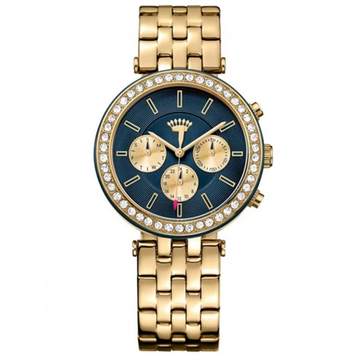 Μοντέρνο ρολόι της Juicy COUTURE από χρυσό ανοξείδωτο ατσάλι με μπλε καντράν
