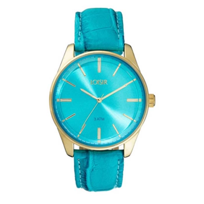 Από τη LOISIR ένα κομψό ρολόι με επιχρυσωμένη ροζ μεταλλική κάσα και τιρκουάζ λουράκι