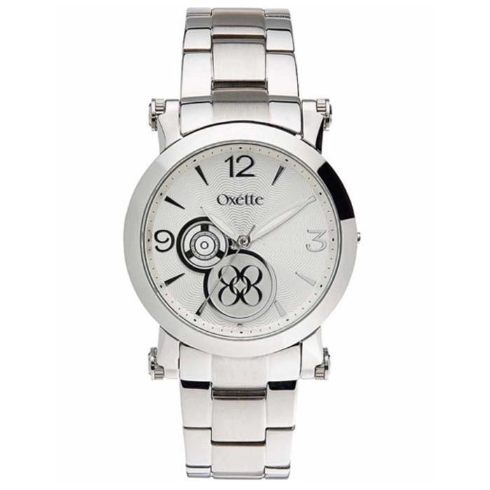 Ένα μοντέρνο ρολόι της Oxette από ανοξείδωτο ατσάλι και ασημί καντράν
