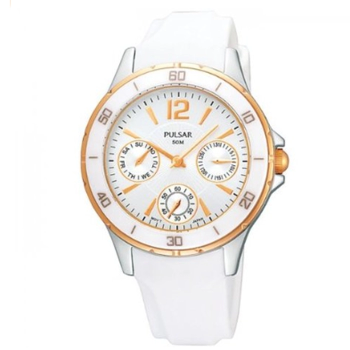 Mοντέρνο ρολόι της Pulsar από ανοξείδωτο ατσάλι και λευκό καουτσούκ λουράκι