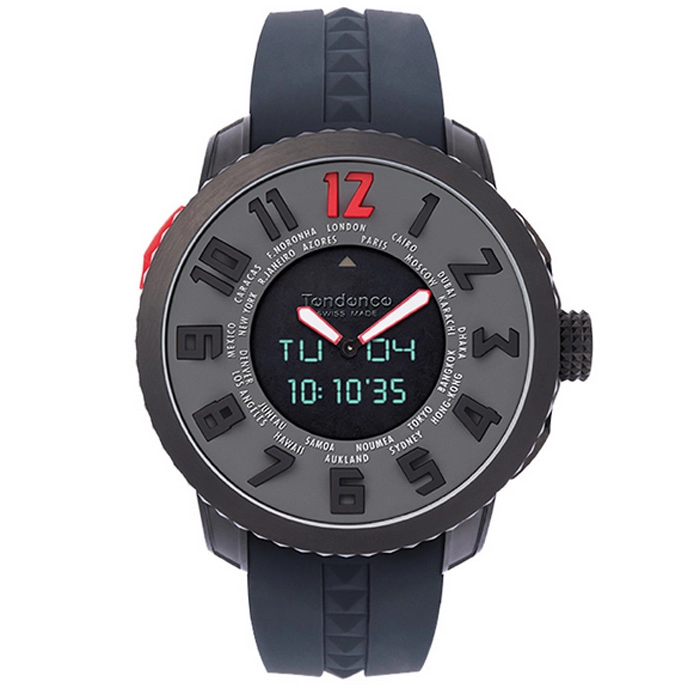 Από τον οίκο Tendence της σειράς Swiss Made ένα ρολόι από ανοξείδωτο ατσάλι και γκρι καουτσούκ.